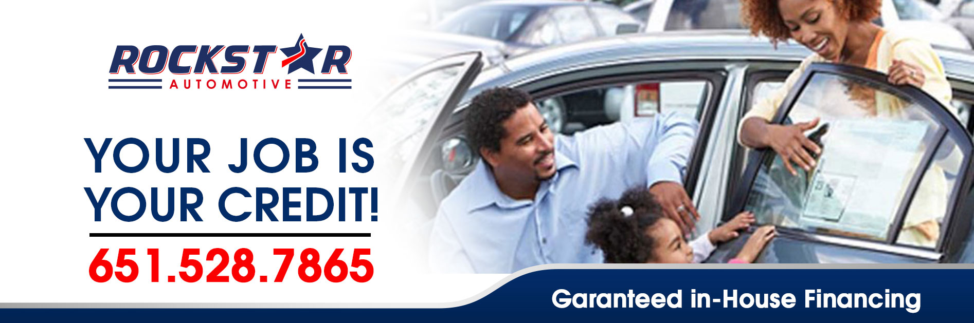 Used Car SalesWe do all our financing in house; this means you buy here and pay here. We’re the only Minneapolis used car dealership that makes your convenience our number one priority. There’s no need to fill out lengthy application forms, wait for credit checks, and then haggle with pushy salesmen who care more about making the sale than ensuring your satisfaction. Rockstar Automotive does things differently. Buy here pay here available! We make the used car buying process simple, easy, and accessible to everyone. We’re dedicated to taking the headache out of car buying by offering the largest selection of vehicles to choose from and holding ourselves to the highest standard of customer service possible. If you’re looking for the best used cars for sale St. Paul has to offer and the best customer service around, Rockstar Automotive has you covered. Give us a call, send us an inquiry, or stop by one of our three convenient locations today. Our friendly team can wait to help find the perfect used car you!